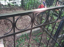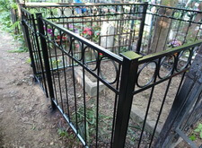В первую очередь убираем кресты и старую лавочку. Чистим ограду от старой краски.