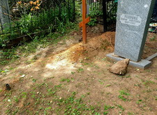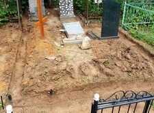 Затем наступил самый ответственный этап работы: монтаж ограждение. Работа по его установке опять-таки заняла достаточно долгое время, однако в результате чего по периметру могилы была установлена достаточно высокая статусная металлическая ограда, сразу же выделяющая место захоронения на фоне других участков. На фотографиях ниже представлен окончательный внешний вид могилы с разных ракурсов на момент завершения работ.