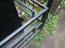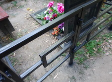 Последовательность работы стандартная. Во-первых, сжечь старую краску, во-вторых, зачистить ограду до металла, после покрыть грунтом чистый металл и покрасить черной краской. После покраски убраться на могиле. Далее на фото обожженная краска на ограде.
