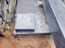 Привозим заранее изготовленное гранитное ограждение, согласованное с клиентом. На этапе монтажа цоколя зачищаем от полировки все соприкасающиеся поверхности и делаем на них засечки: это поможет клею лучше схватиться, тем самым продлевая срок службы ограждения. Балки мы приподнимаем за счёт специальных проставок. Такое решение очень удобно: в пятисантиметровые щели будет уходить скапливающийся на могиле мелкий мусор, во время дождя туда будет стекать вся влага, а при выполнении влажной уборки достаточно будет просто пролить территорию места захоронения необходимым количеством воды.