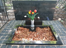 На данном месте захоронения нам предстояло провести следующие работы: поставить на место покосившийся памятник и положить на территорию участка гранитную брусчатку.