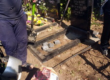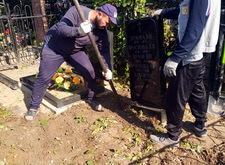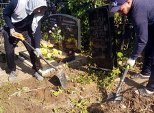 Ремонт покосившего памятника и оформление цветника брусчаткой