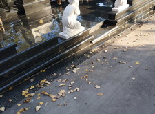 В ходе работ возникло небольшое недопонимание между нами и администрацией кладбища. Нас попросили убрать выступающую на проезжую часть площадь прилежащей территории. Конфликт был урегулирован, мы немного подрезали гранит и положили в образовавшуюся нишу холодный асфальт.