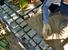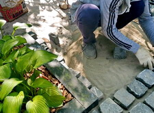 Приступаем к выкладке брусчатки, параллельно с этим устанавливаем лавочку.