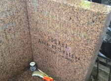 Надпись с небольшого черного памятника мы перенесли на красную плиту и открасили все надписи.