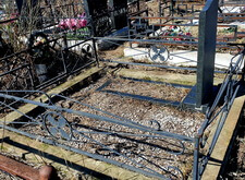 В процессе уборки мы удалили всю траву на могиле, дополнительно очистили периметр места захоронения. После уборки мы вынесли мусор, протёрли оградку и памятник, сделалав надпись на памятнике чётче.