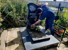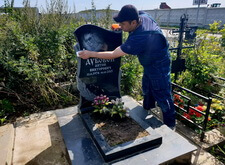 Затем мы перешли к надгробью: протёрли памятник, обновили надпись на нём, привели в порядок цветник и основание мемориала.