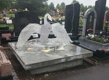 Очень сложная и интересная работа по созданию уникального мемориального комплекса. Он на столько уникальный и запоминающийся, что если на Троекуровском кладбище (богемное кладбище Москвы), где установлен этот комплекс, вы спросите у любого служащего где находится могила с лебедем, вам легко покажут дорогу.